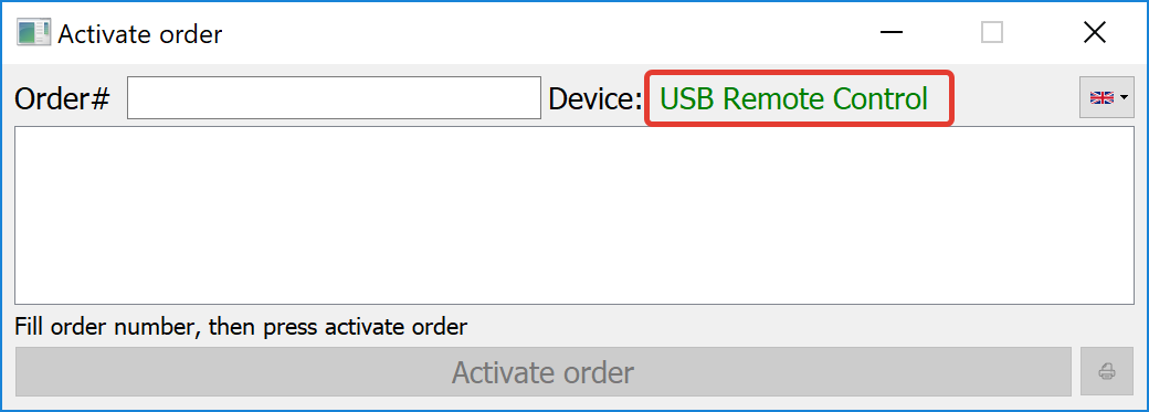 Open RCActivator then connect your purchased RC to your computer via the USB cable that you received in the RC’s box. You will see the "USB remote control" label in green-lighting on the activator program.